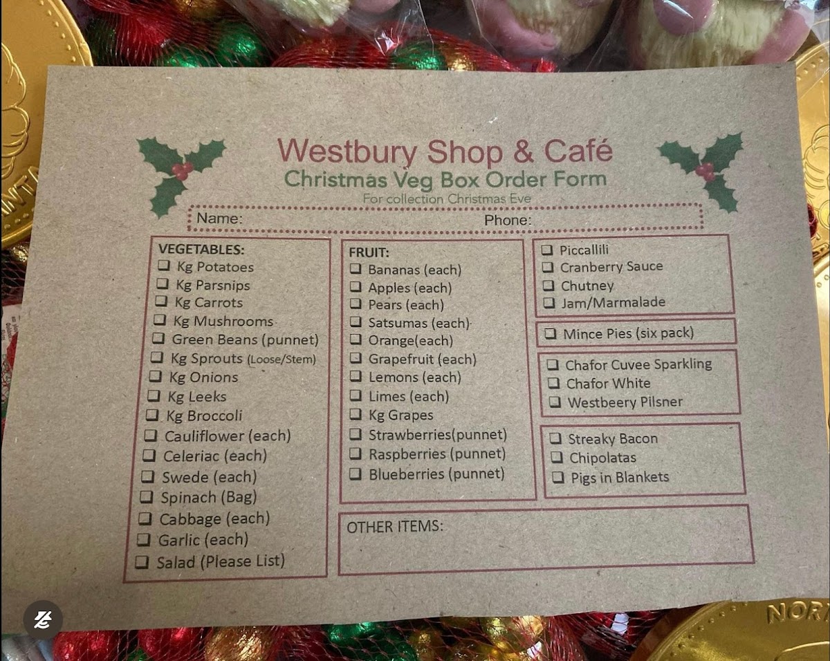 Westbury Community Shop & Cafe Menu